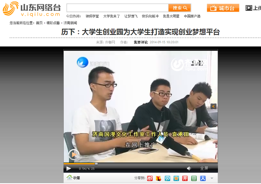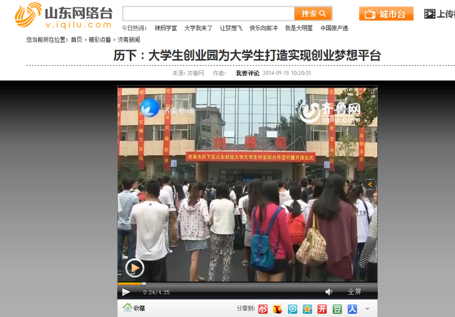 1.大学生创业园为大学生打造实现创业梦……济南电视台济南新闻2014.9.12