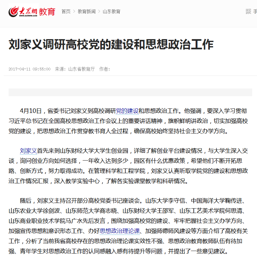 6.刘家义调研高校党的建设和思想政治工作……大众网2017.04.11